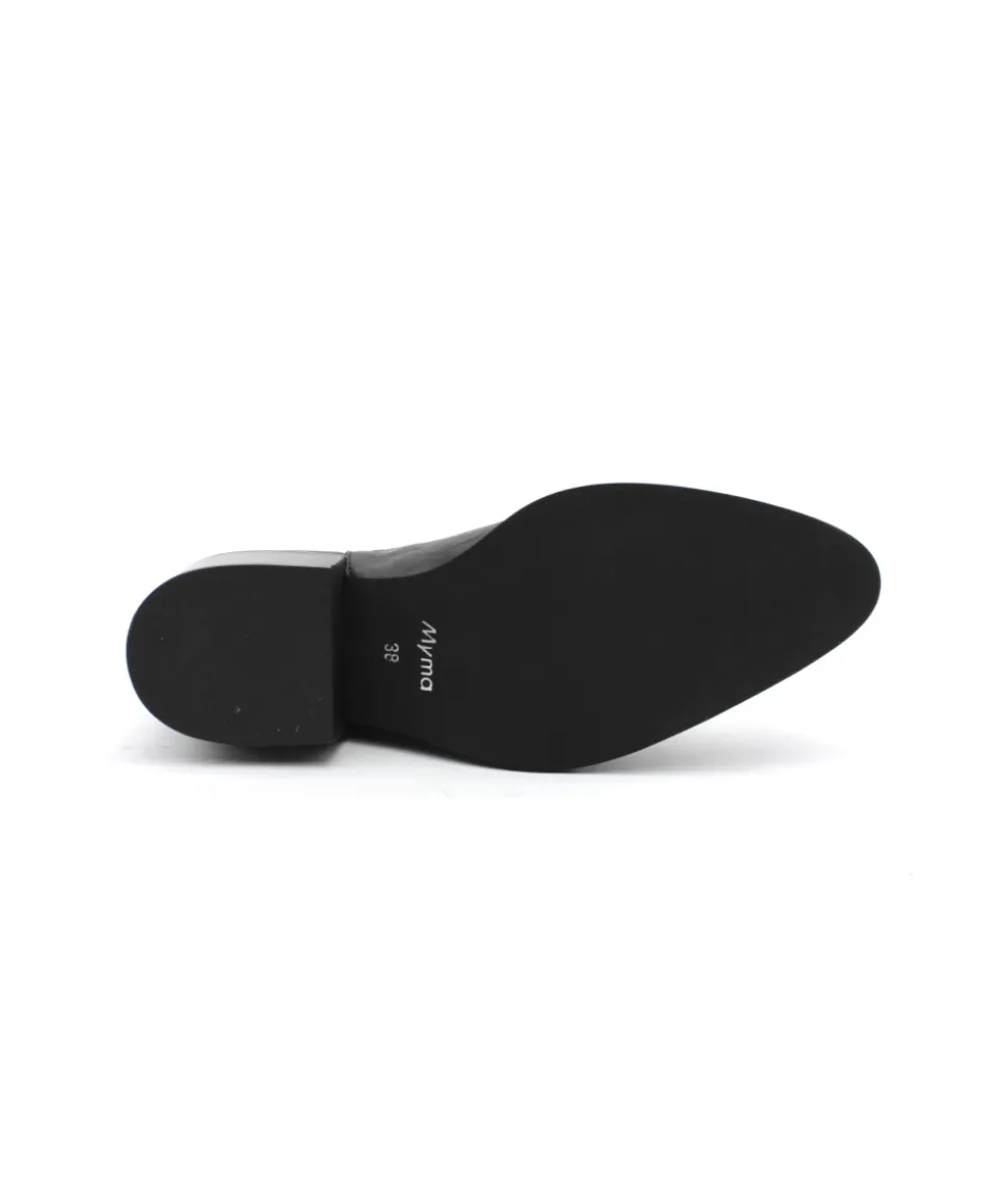 Élégante, chic et indémodable, les bottines 5829/01 en cuir noir de la maison Myma font leurs retour ! Un superbe travail sur les empiècements en cuir au niveau de la tige a été réalisé. On l’aime pour la simplicité qu’elle propose, la praticité d’enfilage des côtés élastiqués et de la hauteur parfaite de son talon. Rien à redire, c’est la paire que chaque femme mérite d’avoir dans son shoesing !