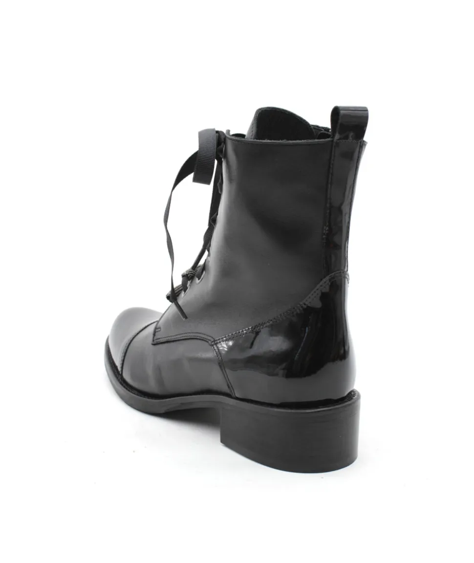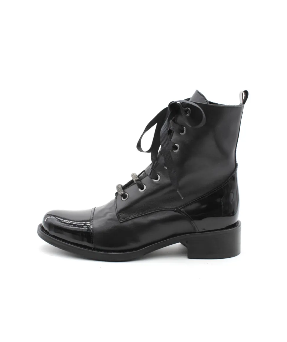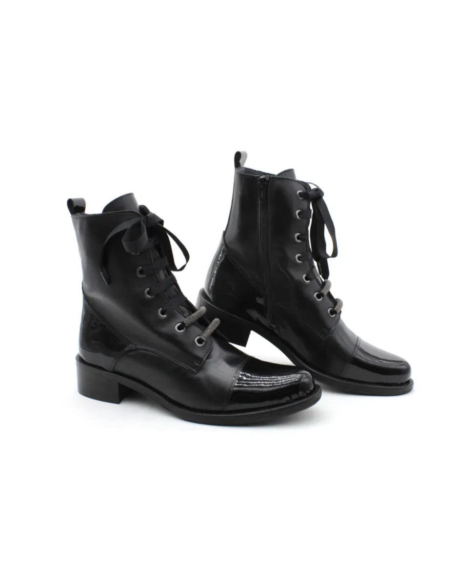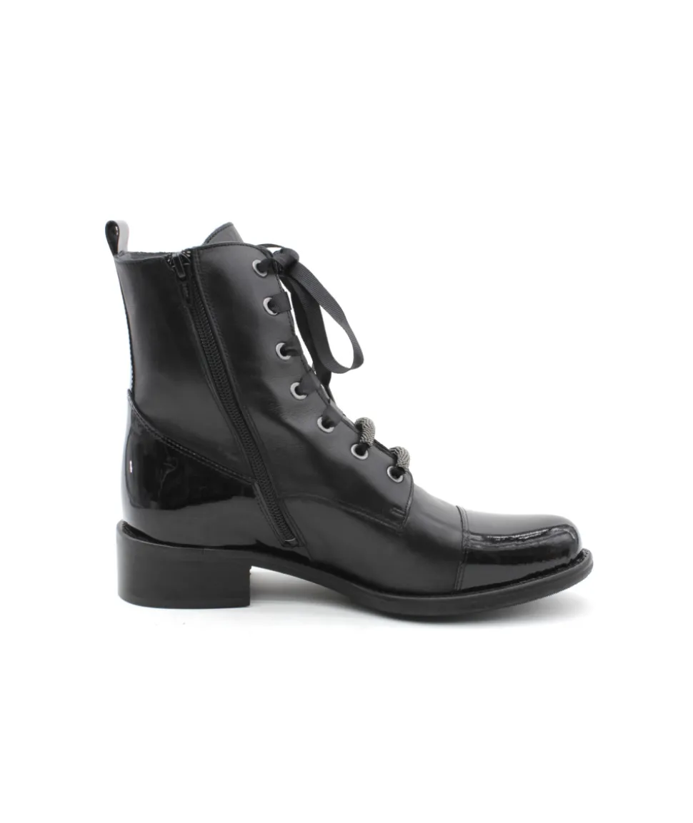 Élégante, chic et indémodable, les bottines 6909/00 en cuir noir de la maison Myma font leurs retour ! Un superbe travail sur les empiècements en cuir au niveau de la tige a été réalisé. On l’aime pour son look original mais indémodable, la praticité d’enfilage grâce aux lacets et son zip latéral ainsi que la cambrure parfaite de son talon. Rien à redire, c’est la paire que chaque femme mérite d’avoir dans son shoesing ! Chez L’Empreinte on est fan de son lacet plat et de ses bijoux.