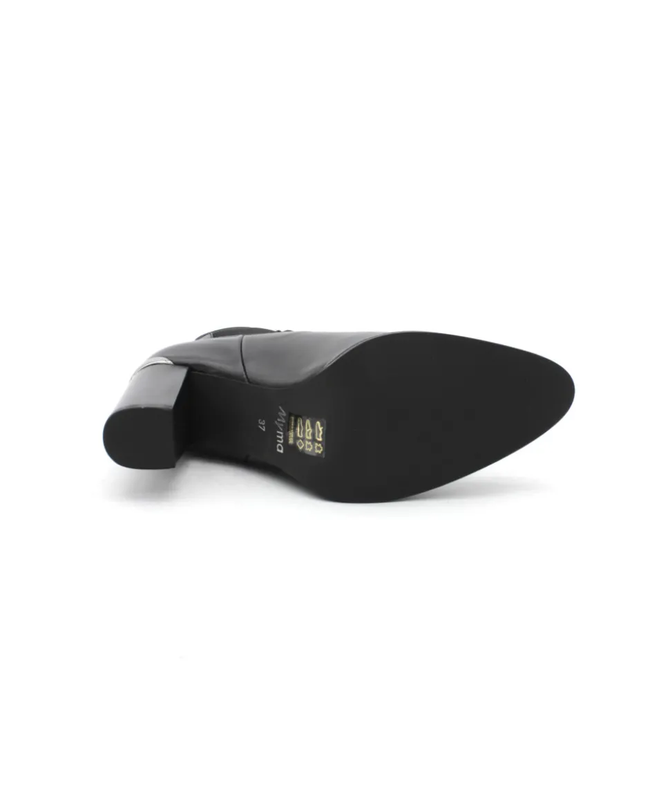 Élégante, chic et indémodable, les bottines 6911/00 en cuir noir de la maison Myma font leurs entrées ! Un superbe travail sur les empiècements en cuir au niveau de la tige a été réalisé. On l’aime pour la simplicité qu’elle propose, la praticité d’enfilage des côtés élastiqués et de la hauteur féminine de son talon. Rien à redire, c’est la paire que chaque femme mérite d’avoir dans son shoesing !