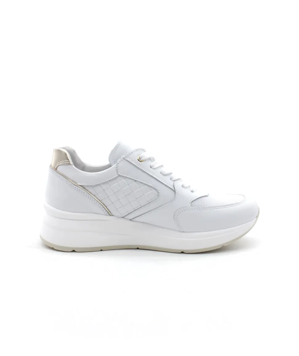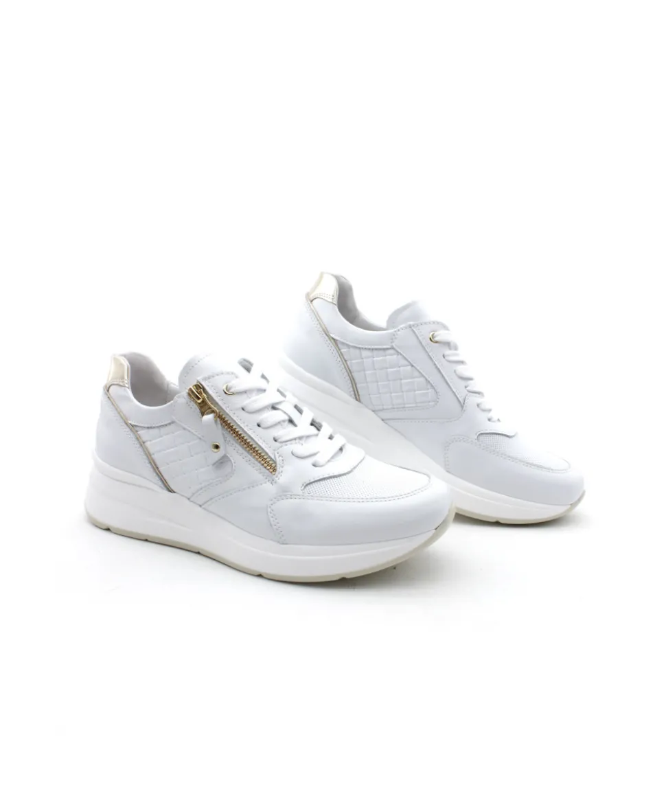 À la recherche d’une basket originale et atypique ? Voici le modèle 06457 de la maison italienne NEROGIARDINI dans son cuir couleur blanc. Assemblée sur une semelle épaisse de 5 cm, cette sneaker s’équipe d’un lacet pour un maintien optimal et d’un zip pour une plus grande facilité d’enfilage. On aime les différentes coupes de cuir, tressées, perforées… et les touches dorées sur le contrefort en rappel de la couleur du zip.