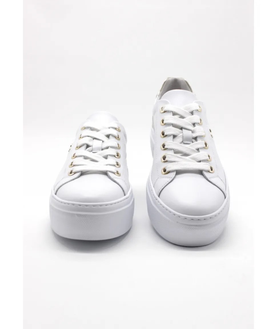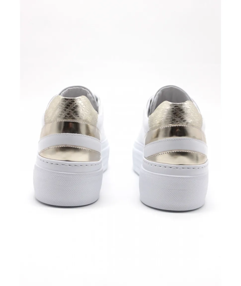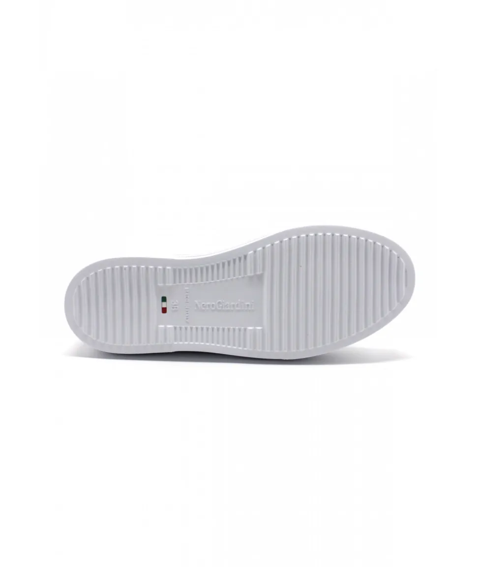 À la recherche d’une basket originale et atypique ? Voici le modèle 15303 de la maison italienne NEROGIARDINI dans son cuir couleur blanc. Assemblée sur une semelle épaisse de 4 cm, cette sneaker s’équipe d’un lacet pour un maintien optimal. On aime son contrefort, ses oeillets et son logo couleur dorée or qui apportent une finition soignée.
