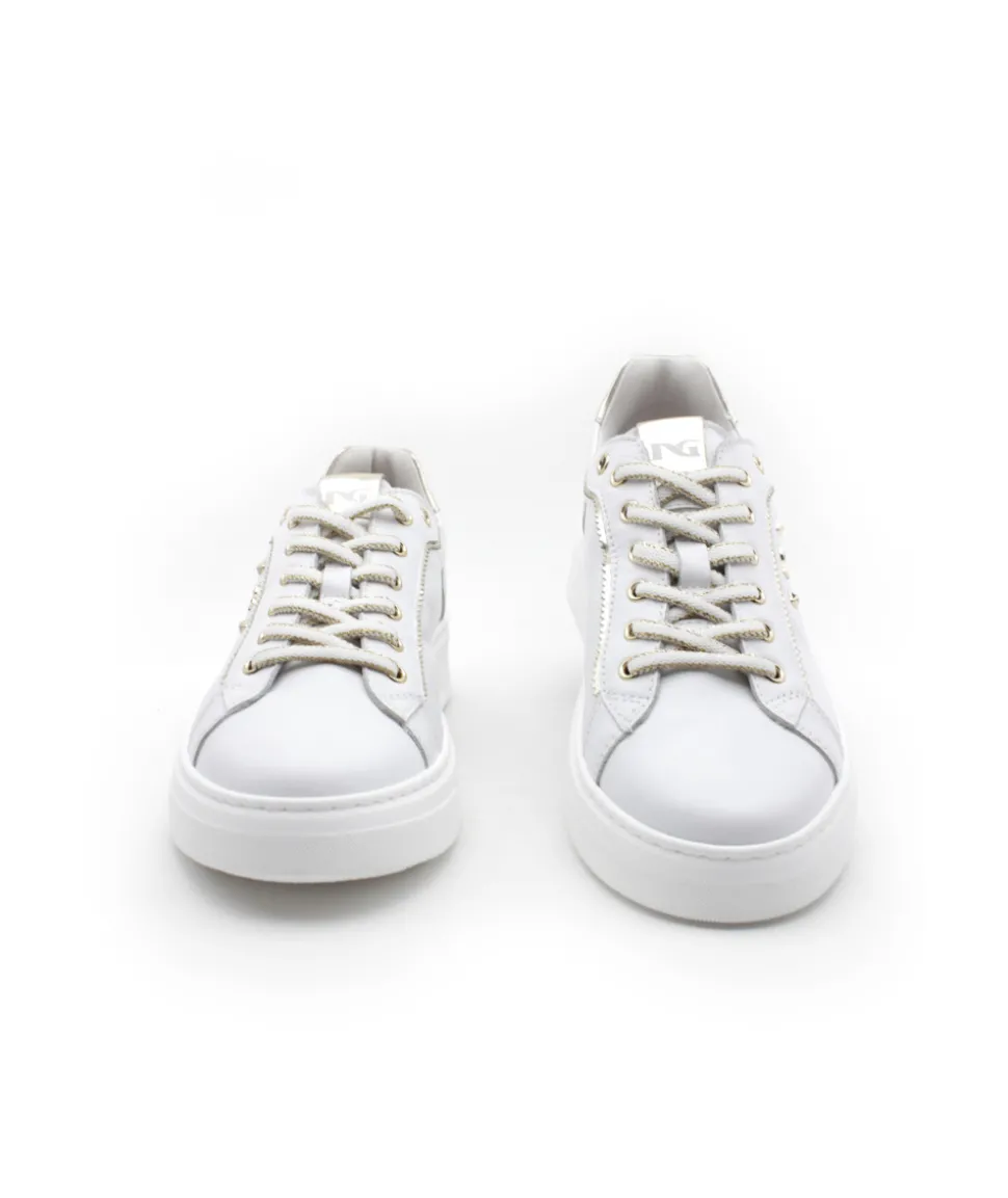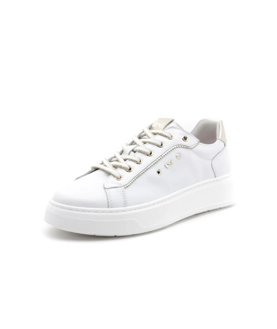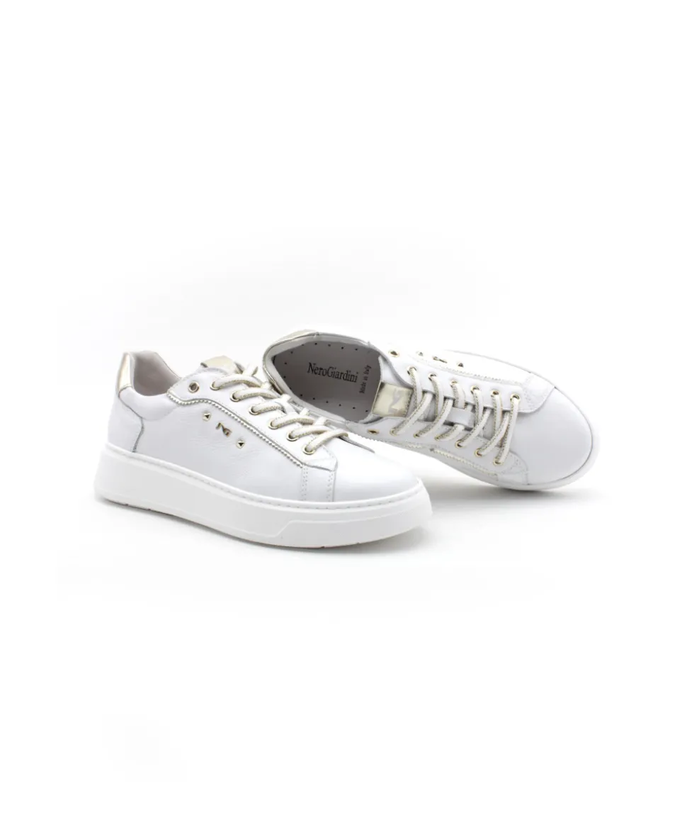 À la recherche d’une basket originale et tendance ? Nerogiardini a créer pour vous la sneakers parfaite avec le modèle E409977D qui s’habille d’un cuir crème accompagné par quelques jolies touches dorées.
