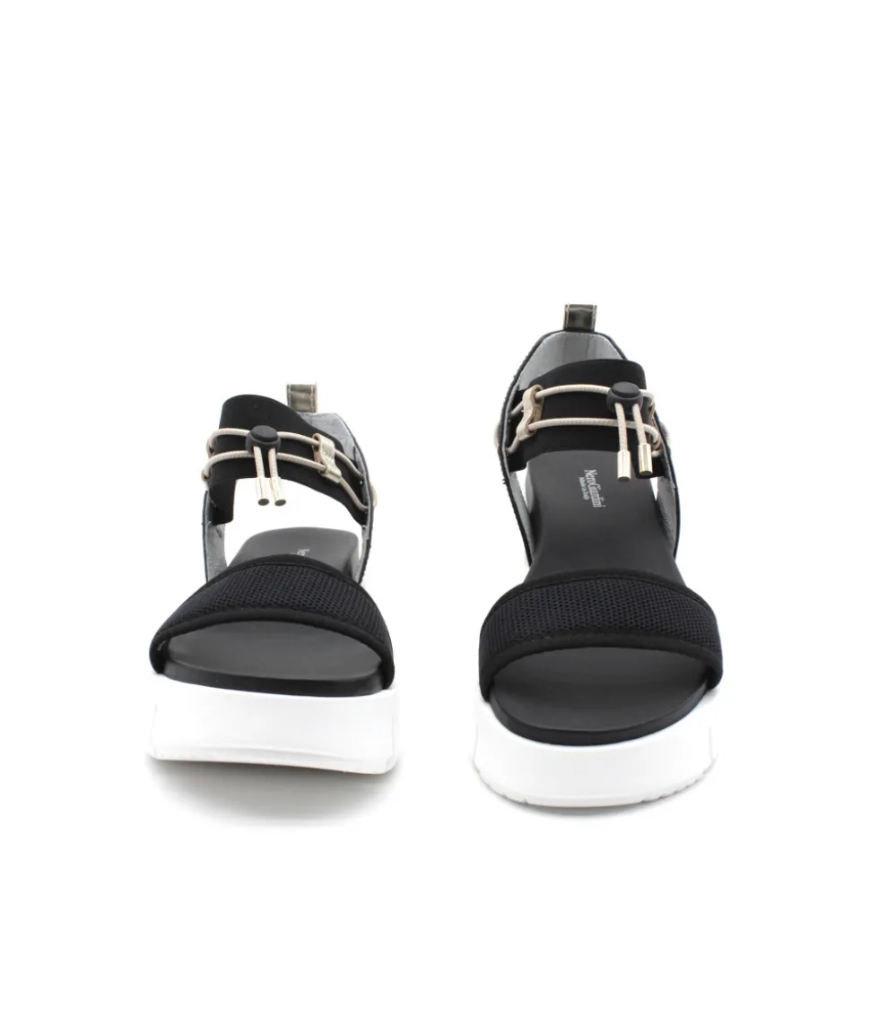 Modèle ultra-branché de la collection, la création NEROGIARDINI E410700D est le must-have de l’été avec le mélange d’une sandale et d’une semelle basket pour un look street-wear. Noire et doré, cette sandale arbore des brides originales élastiquées pour un rendu féminin et tendance. Entièrement doublé en cuir, le bien-être n’est pas mit de côté. Un bonheur à porter pour les modeuses comme vous !