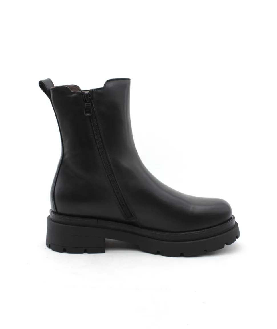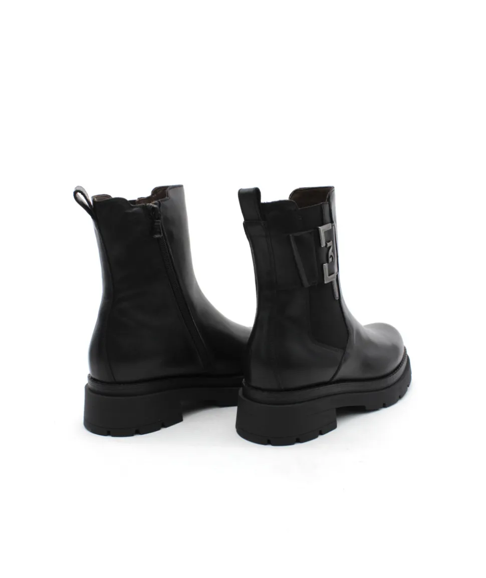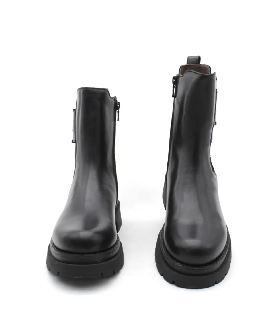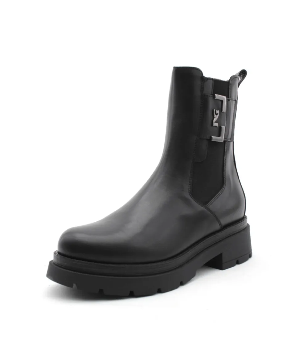Magnifique boots pour femme en cuir lisse noir. Voici la dernière création de la maison italienne Nerogiardini avec sa bottine I309150D. Une création toute en élégance, à l’image du savoir faire italien. Perchée sur un talon de 4,5 cm, cette bottine s’équipe d’un zip intérieur pour la praticité et d’une boucle décorative sur la tige élastiquée. Facile à enfiler grâce à son zip, vous pourrez les porter tous les jours avec chacune de vos tenues… Robes, Jeans et jupes ne seront pas en reste avec cette chaussure tendance et féminine.