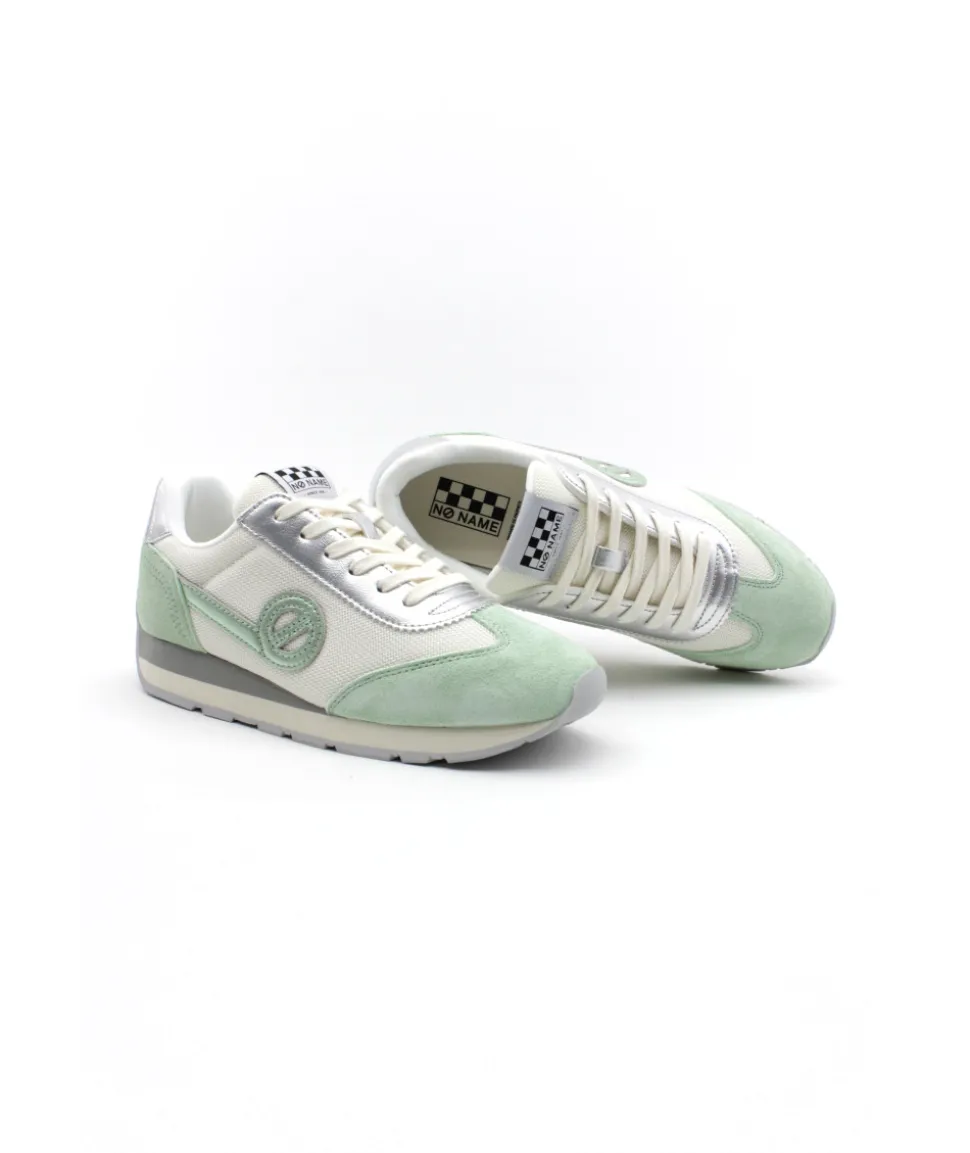 Envie d’un look rétro tendance ? La sneaker CITY RUN JOGGER de NO NAME vous propose cette réédition en bi-matière cuir et toile dans un coloris vert et blanc pour s’adapter à votre look sportwear. Avec son look chic et féminin, cette running vous offre un confort et un amorti exceptionnel grâce à sa semelle en gomme légère. Son logo en cuir argenté sur le côté affirme un look « Sport chic » qui habillera toutes vos tenues.