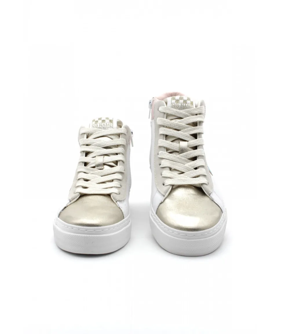 À la recherche d’une basket montante tendance, souple et originale ? Voici la dernière création de NO NAME sur son nouveau modèle STRIKE MID CUT qui mélange des cuirs blanc, métallisé or et métallisé rose. Véritable référence dans le monde de la mode, les sneakers NO NAME apportent modernité et élégance à vos tenues.