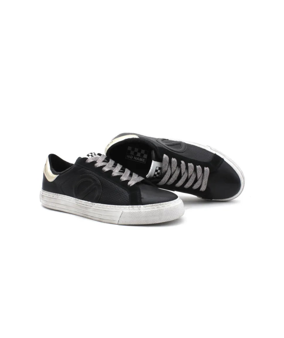 À la recherche d’une basket tendance, souple et originale ? Voici la dernière création de NO NAME sur son modèle STRIKE SIDE en cuir noir et gold. Véritable référence dans le monde de la mode, les sneakers NO NAME apportent modernité et élégance à vos tenues.