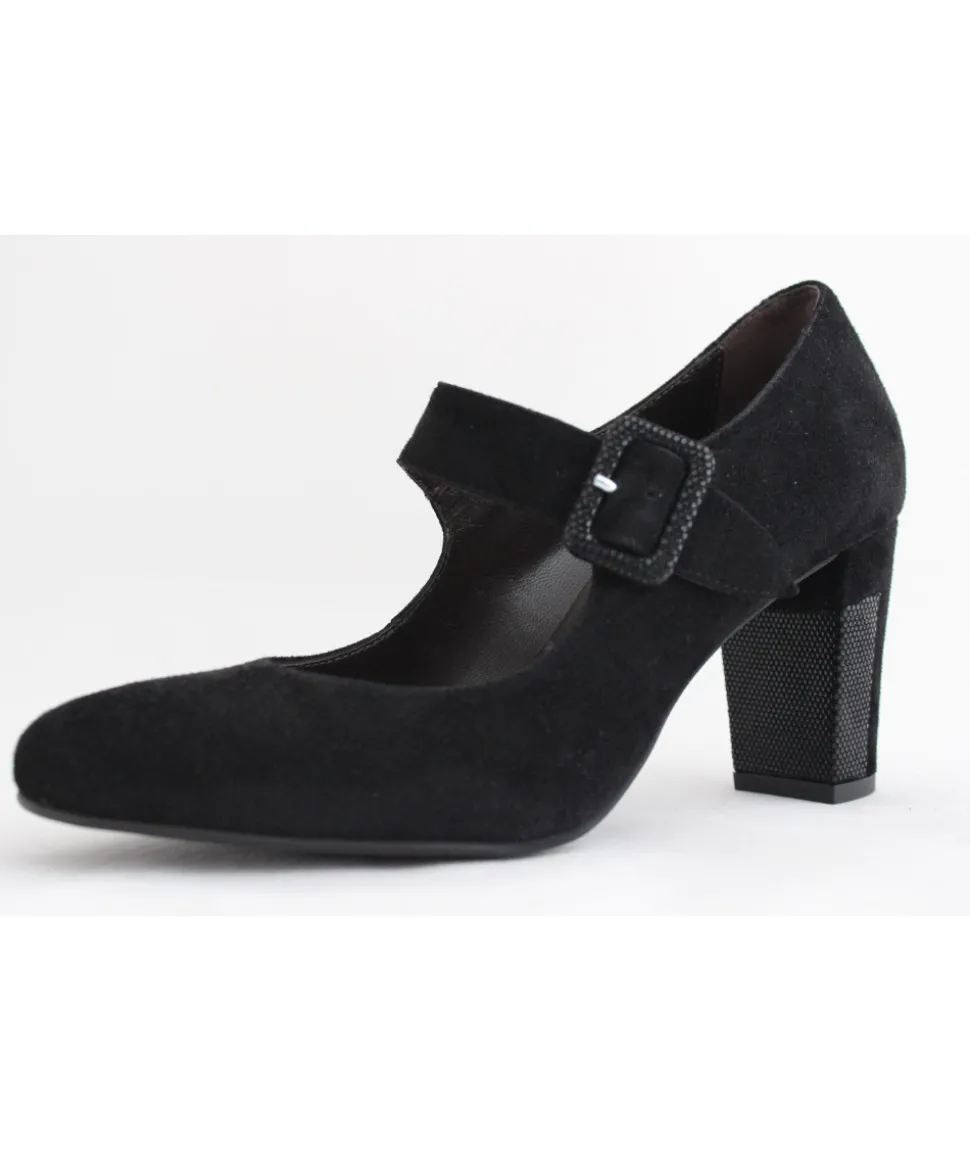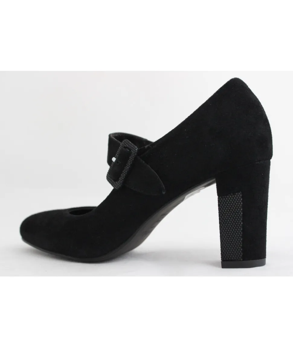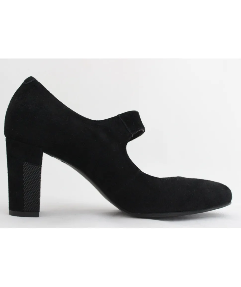 Dessus : Cuir velours NOIRDoublure : CuirSemelle extérieure : ElastomèreTalon : 7.5 cmFABRICATION PORTUGALRéférenc…