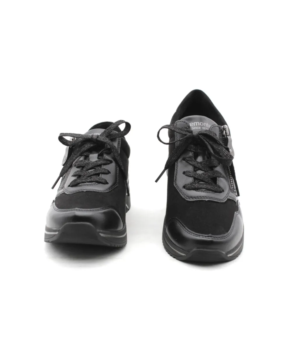 Cette basket compensés D0T01-01 dans sa version noir de Remonte à tout pour plaire, de plus, elle dispose d’une très bonne largeur. Grâce à son tissu stretch elle apporte un maximum de souplesse et de confort pour vos pieds. Doté d’un zip latéral ainsi que d’un lacet, enfiler votre basket n’a jamais été aussi facile. Bonus : elle embarque avec elle la technologie Lite’N Soft : Plus de largueur sur la chaussure, semelle amovible, soutien de voute plantaire, légère et souple.