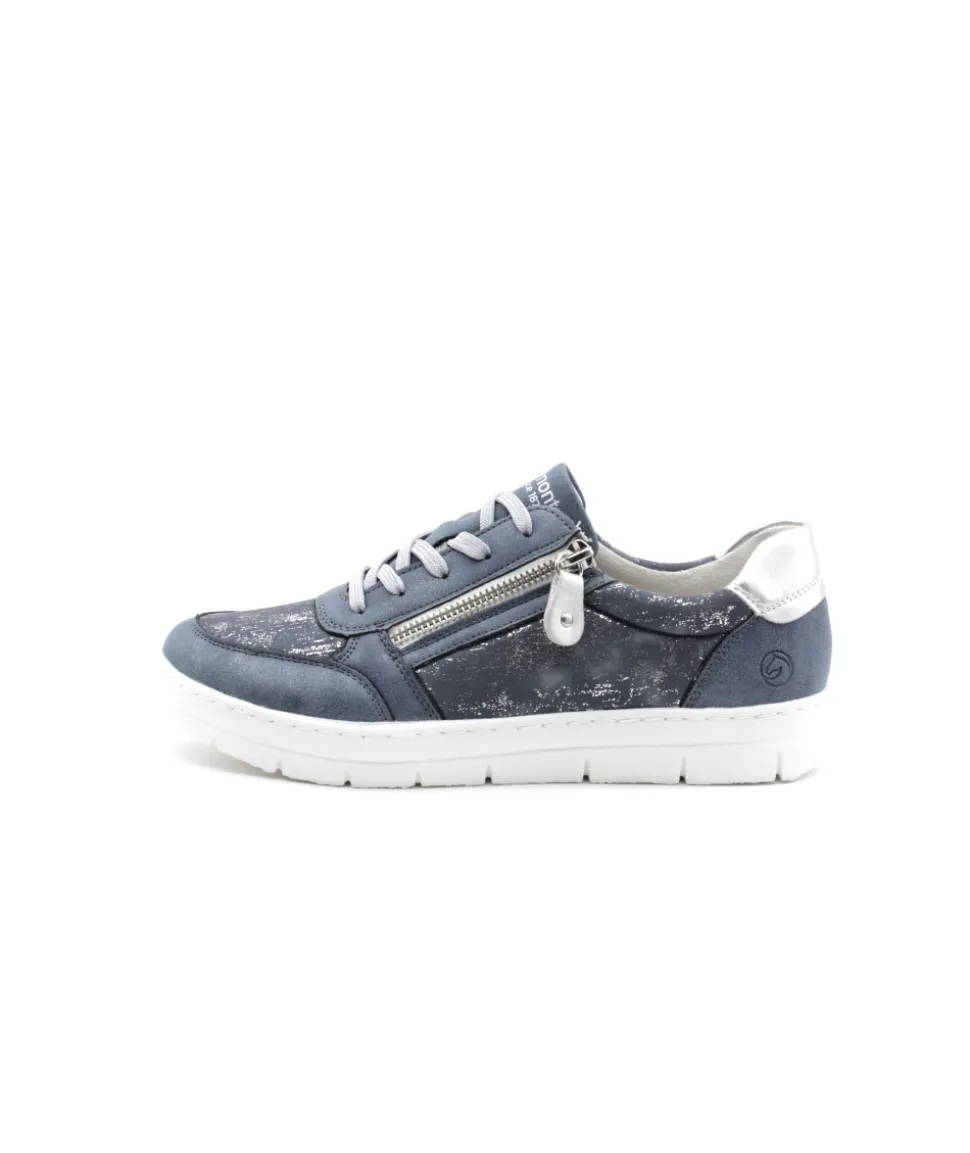 À découvrir absolument, la basket Remonte D5831-12 en textile bleu est un indémodable ultra confortable que chaque femme mériterait d’avoir dans son shoesing ! Cette chaussure basse pour femme sera idéale pour tous les jours grâce à sa semelle intérieure amovible SoftFoam (mousse amortissante), son lacet et son zip très pratique. Sa semelle légère et souple vous accompagnera partout avec confort.