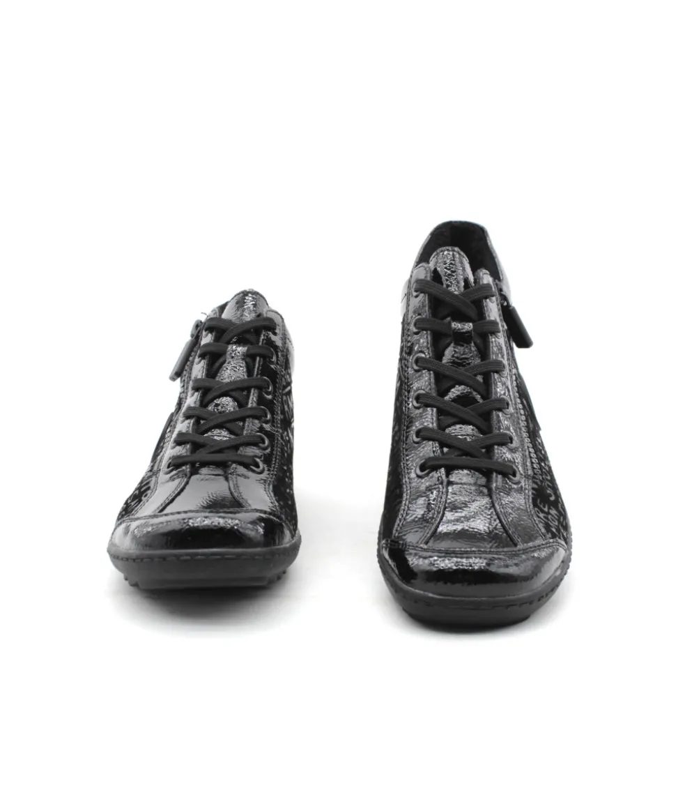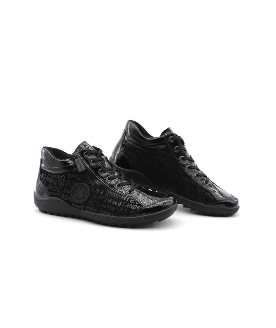 Remonte R1477-01 est une tennis femme en cuir et textile noir. Cette tennis Remonte est facile à chausser grâce à son lacet et sa fermeture éclair. Ce modèle de tennis Remonte est doté d’une semelle amovible matelassée. Idéale pour le quotidien, cette tennis s’adaptera parfaitement avec toute votre garde robe. Idéale pour cette saison avec sa semelle crantée, elle embarque avec elle la technologie Lite’N Soft : Plus de largueur sur la chaussure, semelle amovible, soutien de voute plantaire, légère et souple.