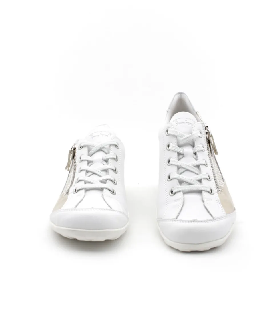 Remonte R3410-81 est une tennis femme en cuir couleur crème. Cette tennis Remonte est facile à chausser grâce à son lacet et sa fermeture éclair. Ce modèle de tennis Remonte est doté d’une semelle amovible SoftFoam (mousse amortissante). Idéale pour cette saison avec sa semelle crantée, elle embarque avec elle la technologie Remonte Soft : Matière respirante, semelle amovible, amortie les chocs, légère et souple.
