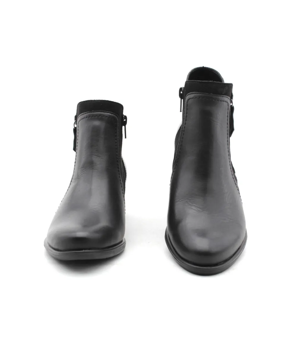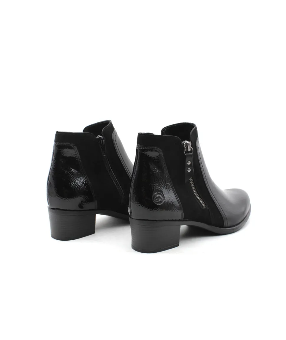 Remonte R5172-03 est une bottine femme en cuir et textile noir. Cette bottine Remonte est facile à chausser grâce à sa fermeture éclair. Cette bottine Remonte est doté d’une semelle amovible et d’un talon détaché. Parfaite pour accompagner vos tenues d’hiver. Elle embarque avec elle la technologie Remonte Soft : matières respirantes, semelle qui amorti les chocs, résiste à l’humidité….