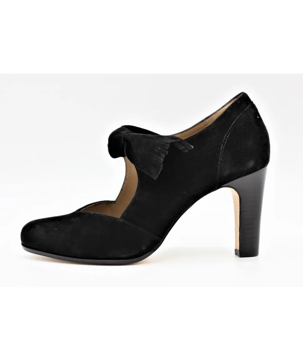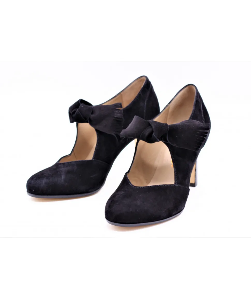 Dessus : Cuir veloursDoublure : CuirBride coup de pied fermée par une pression et ornée d’un noeudSemelle extérieure …