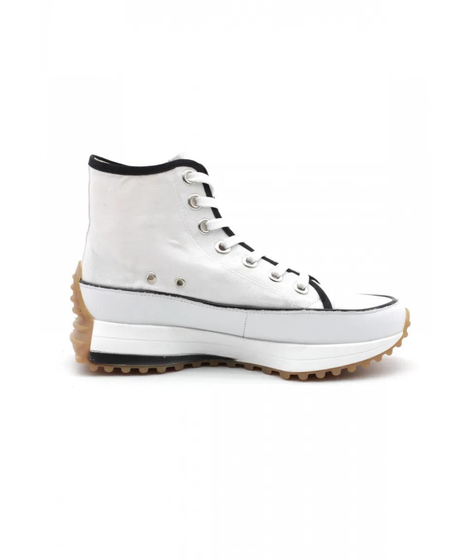 Nouvelle couleur pour ce modèle atypique de la collection ROSEMETAL. FREBUANS se décline maintenant en textile bleu marine ou blanc sur sa semelle blanche imposante. On aime le dessous en caoutchouc marron ultra-tendance et sa ligne branché, sa semelle en picot est creusée au milieu et remonte sur le contrefort pour finir le style de cette sneaker montante.
