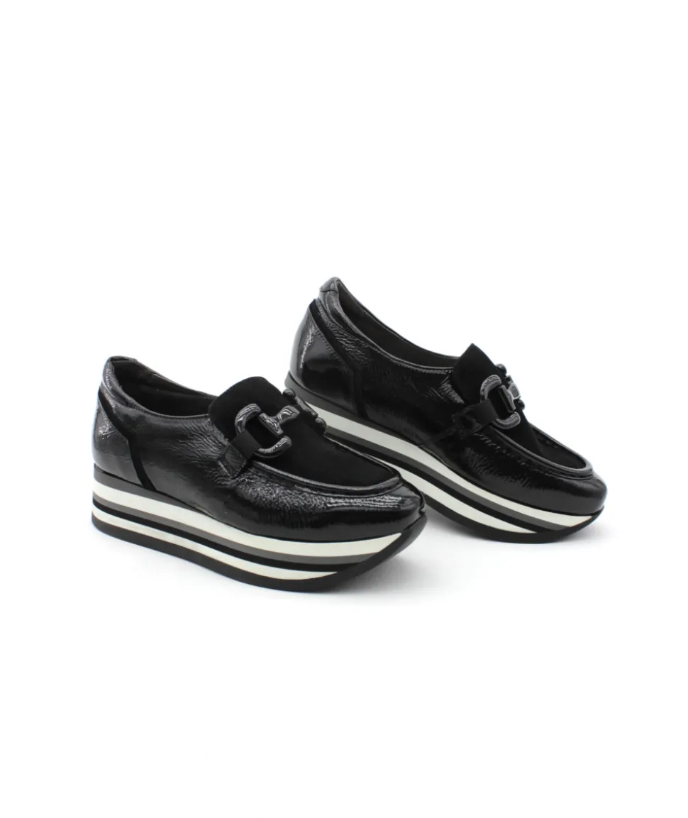 SOFTWAVES propose le mocassin 7.78.61/12 ALINA en cuir vernis noir pour les femmes soucieuses du bien-être de leurs pieds mais sans négliger pour autant le style. Véritable chaussures confortable et élégante, cette nouveauté associe une semelle de basket sur une forme mocassin, du jamais vu jusqu’à présent ! Ses élastiques situés sur le coup du pied vous offrirons beaucoup de maintien lors de la marche.
