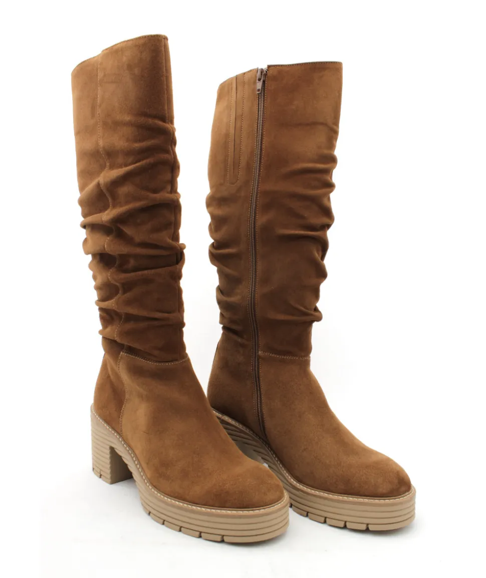Softwaves vous présente sa dernière création, une magnifique botte à talon décroché en cuir velours cognac. Montée sur une semelle en gomme qui offre un superbe amorti, ces chaussures pour femmes s’emparent de toutes les dernières tendances avec une semelle originale et une tige plissée moderne. Un zip intérieur apporte quant-à lui beaucoup de praticité lors de l’enfilage.