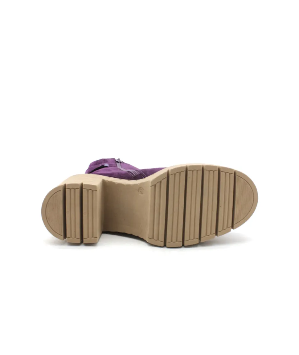 Softwaves vous présente sa dernière création, une magnifique bottine à talon décroché en cuir velours sable et vio…