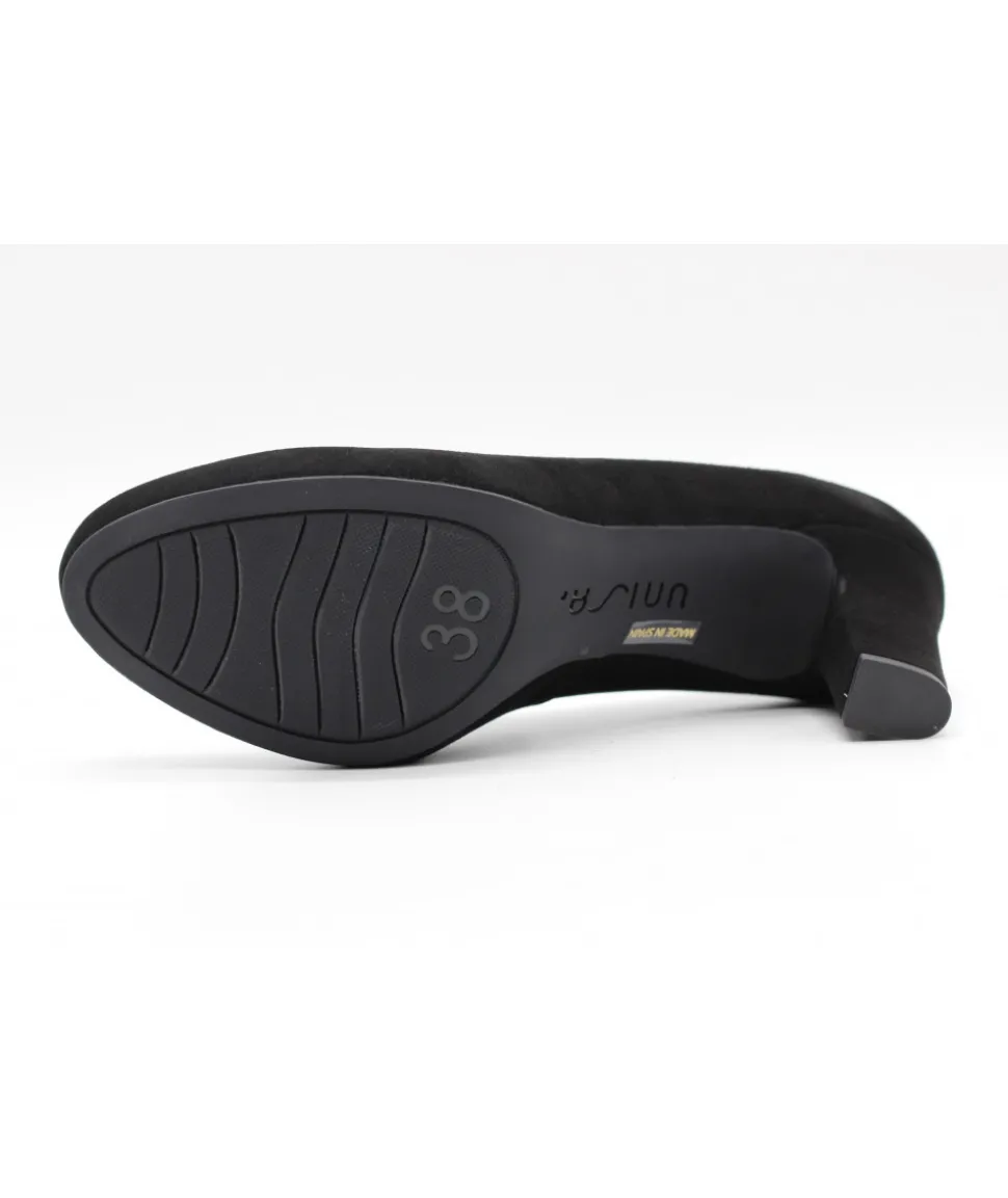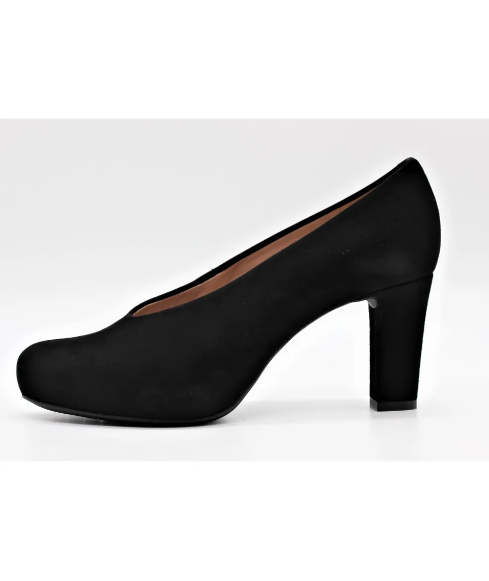 Dessus : Cuir velours NOIRDoublure : CuirSemelle extérieure : GommeTalon : 7.5 cm – plateau 1.5 cmFABRICATION ESPAGNE…