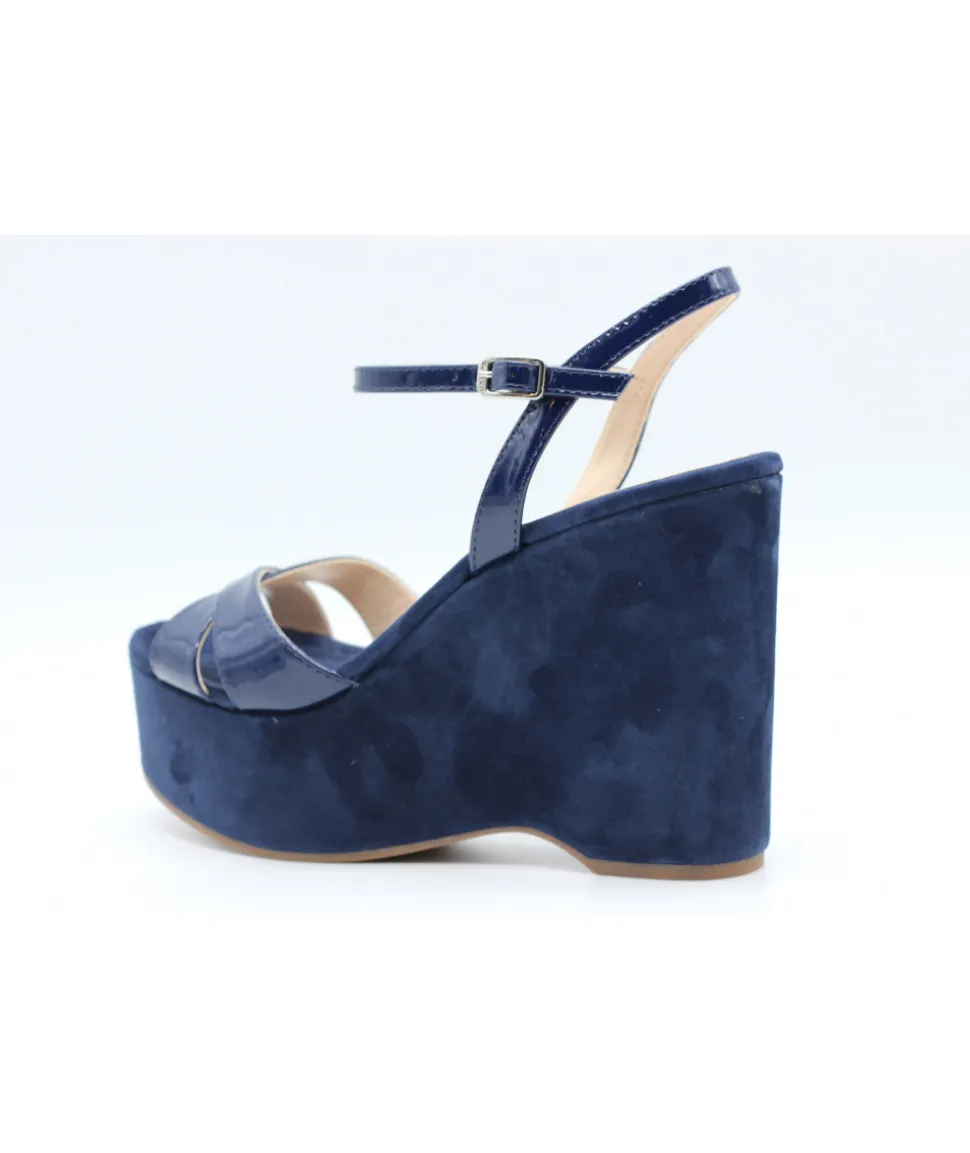 Dessus : Cuir velours et vernis MARINEDoublure : CuirTalon : Compensé 11 cm enrobé – plateau 4 cmSemelle extérieure :…
