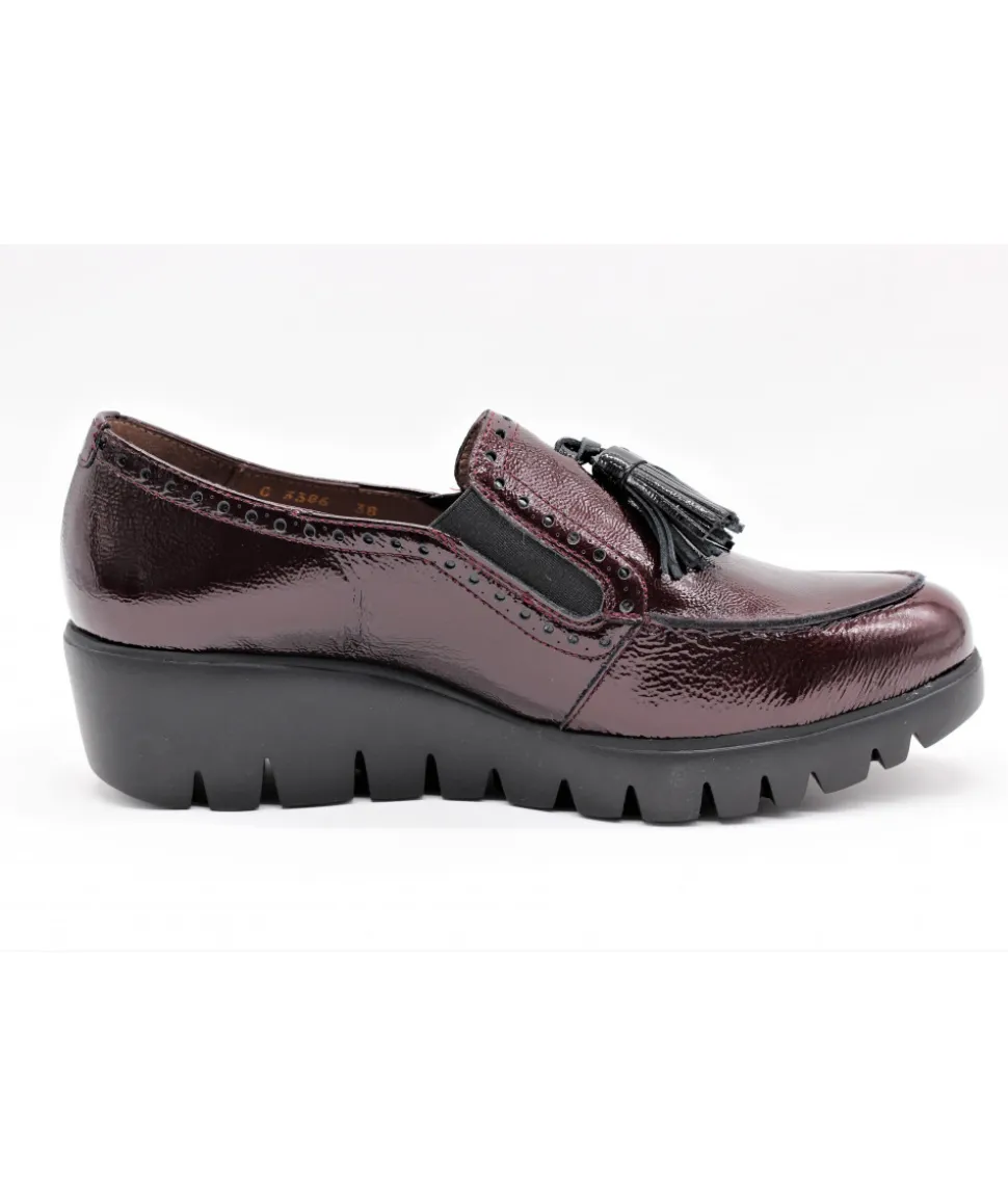Dessus : Cuir vernis NOIR ou BORDEAUXDoublures : Cuir et textileSemelle extérieure : XL Extra lightTalon : 5 cmFABRICAT…