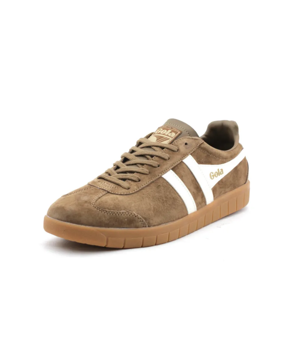 À la recherche d’une jolie basket tendance et originale ? La nouvelle GOLA est faite pour vous avec ce modèle de sneaker HURRICANE SUEDE dans son coloris en cuir velours tabac. Le must-have des baskets branchées pour cette saison au look sport / chic équipées de bandes et d’un contrefort blanc.