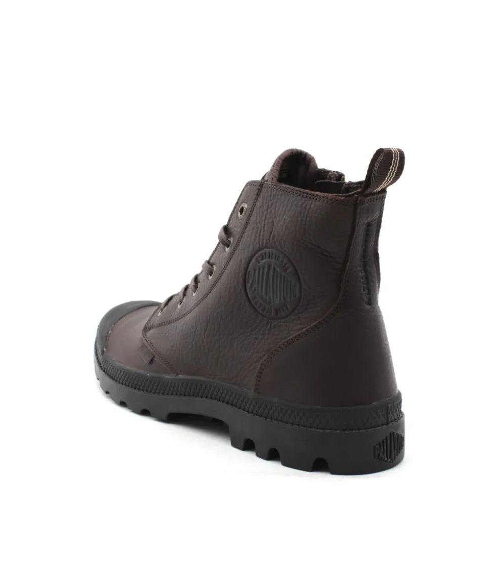 Nouvelle version pour la forme très connue PAMPA de chez Palladium. Cette fois la version PAMPA ZIP LTH se décline en cuir marron foncé grainé et arbore fièrement les logos de la marque sur la languette, les côtés et le talon ! On aime la sobriété de cette chaussure qui bénéficie d’un zip latéral pour plus de praticité à l’enfilage. N’attendez plus pour profitez de sa semelle en EVA ultra-légère !